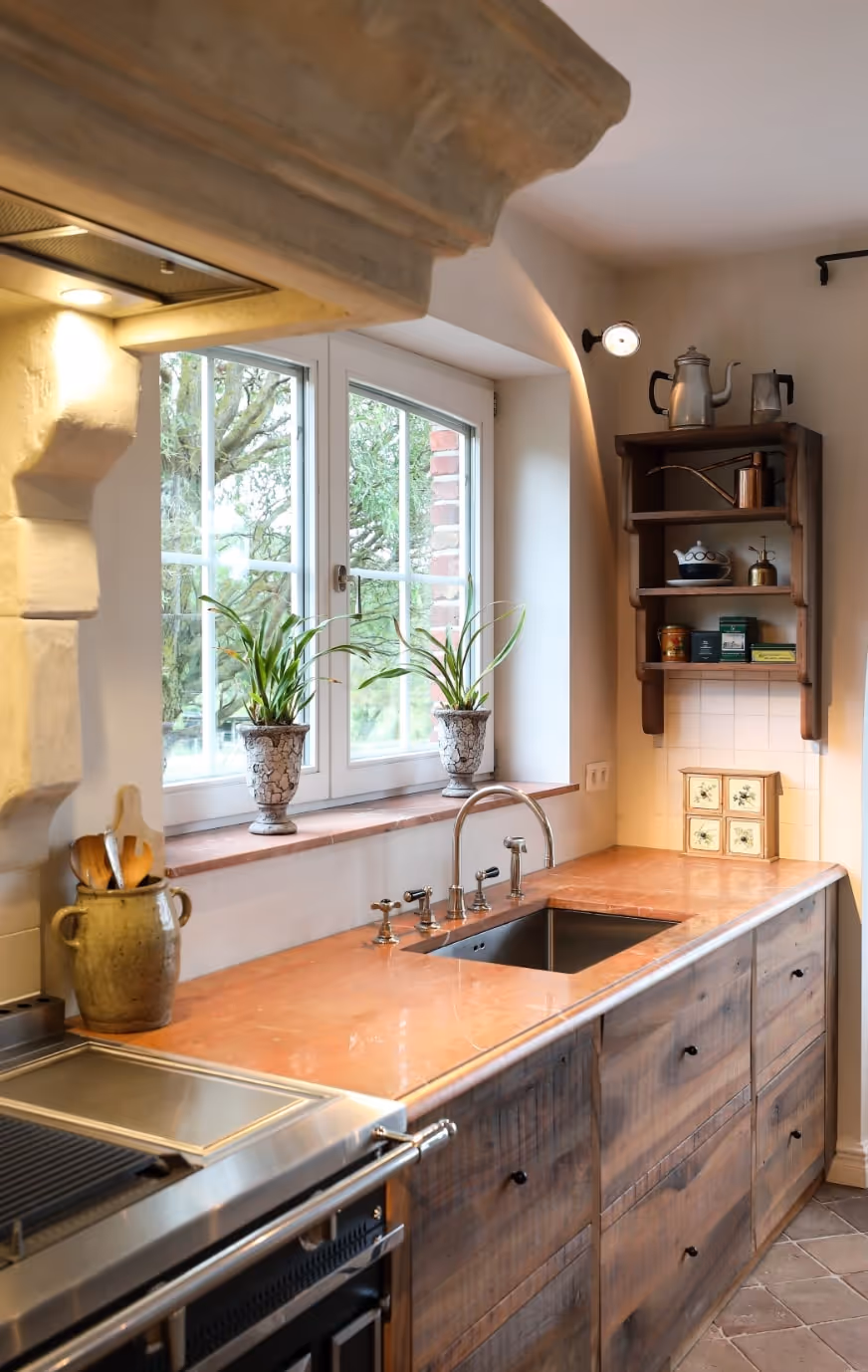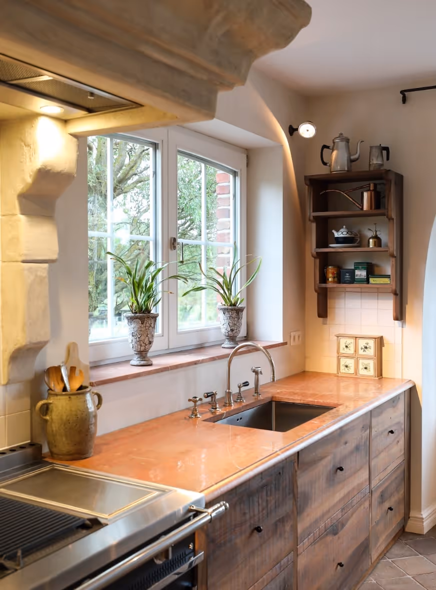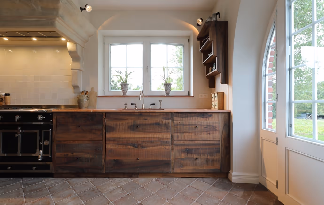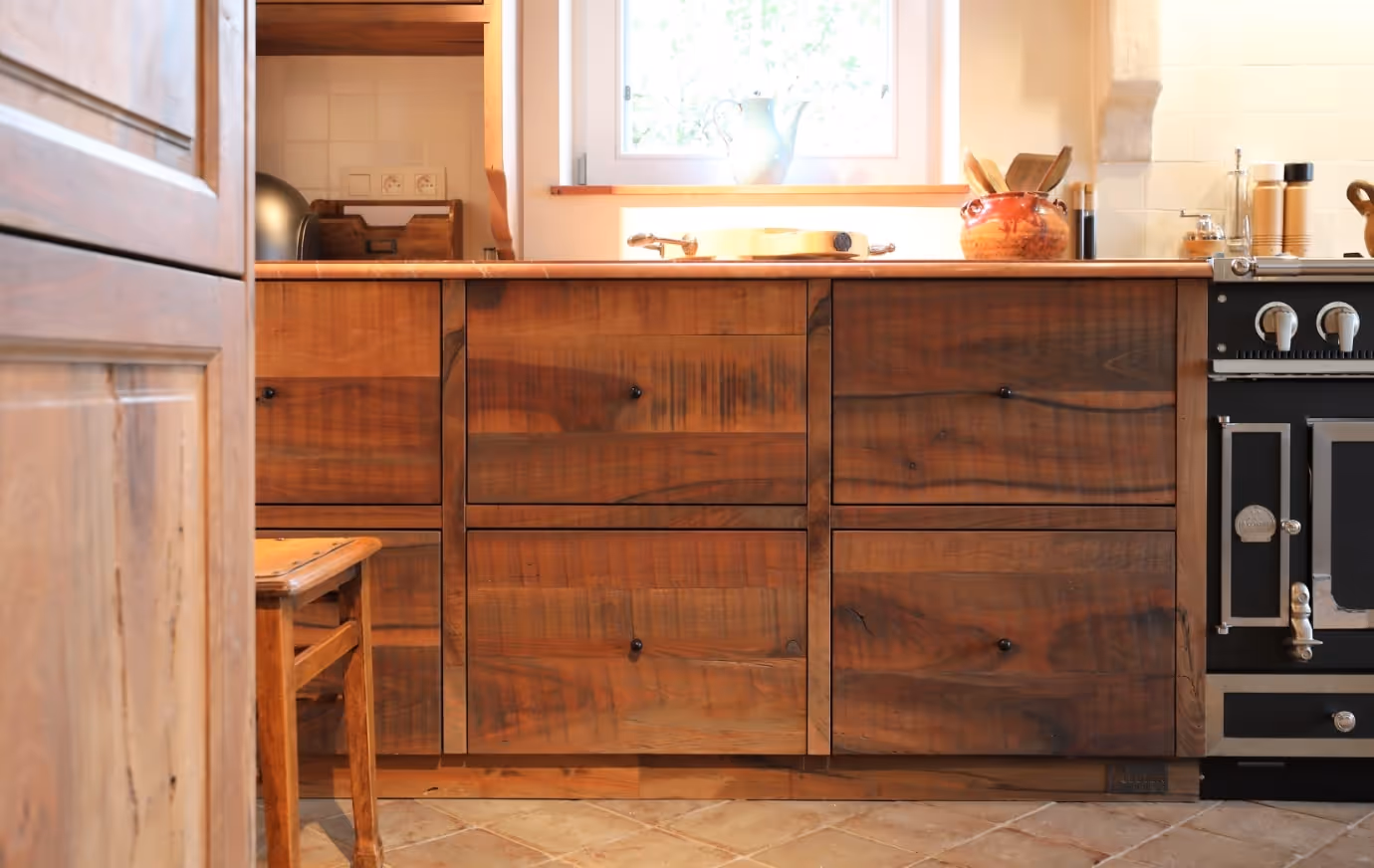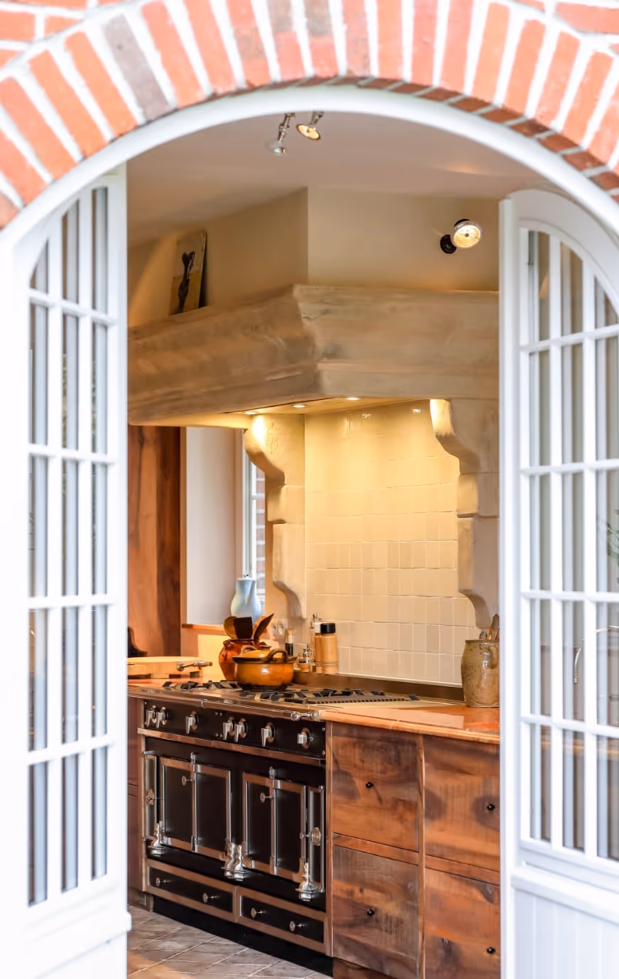Voor dit huis ontwierp en vervaardigde Atelier Matière een notenhouten keuken op maat, waar de elegantie van massief hout de precisie van vakmanschap ontmoet.