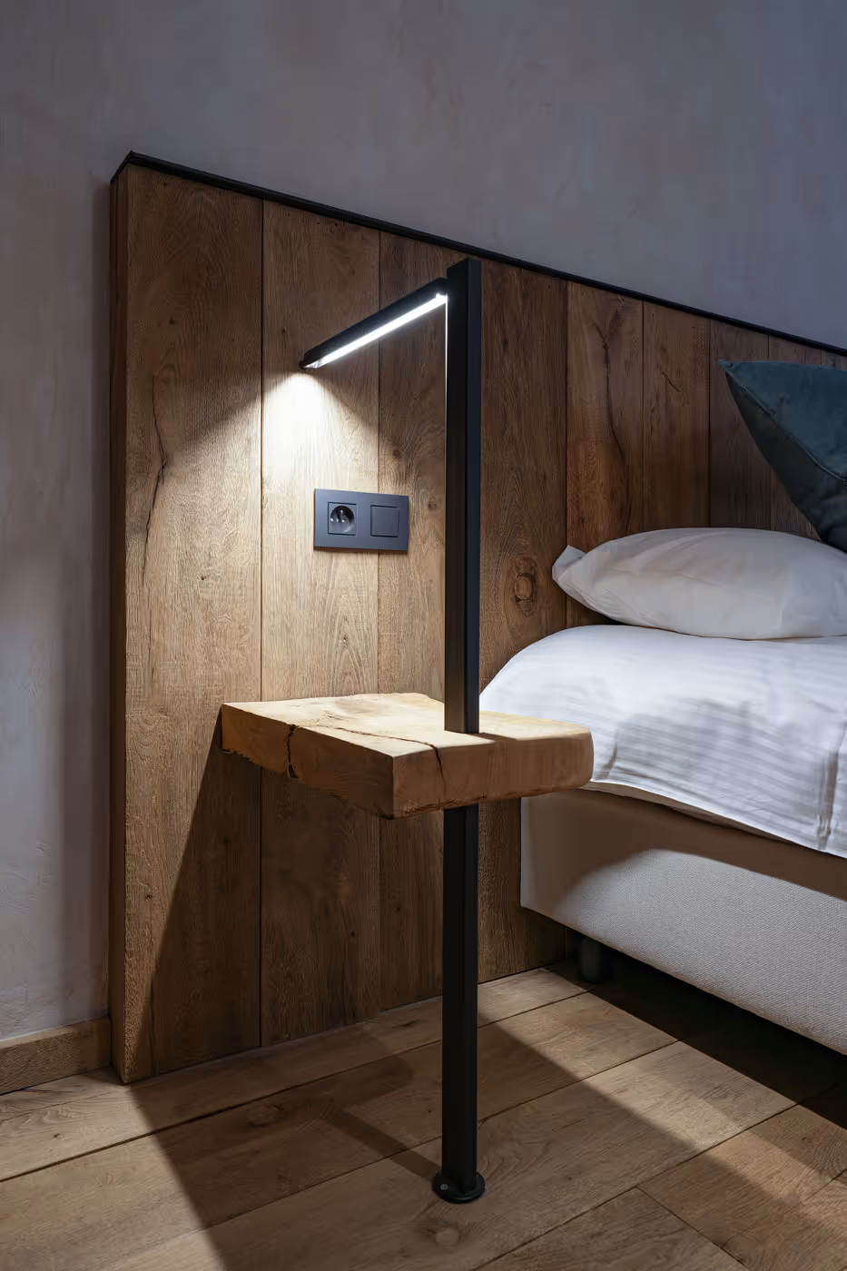 Pour l’Hôtel Léa à Durbuy, Atelier Matière a réalisé plusieurs aménagements sur mesure, alliant élégance et savoir-faire artisanal.